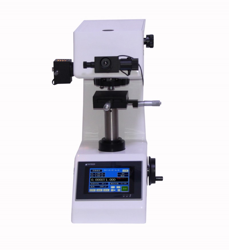MVS-1000Z觸摸屏數(shù)顯顯微維氏硬度計在機械,光學,光源上采用獨特的、精密的設計,使壓痕成像更清晰,測量更精確。采用全新彩色觸摸顯示屏LCD顯示,操作界面采用菜單式結構,可在操作面板上選擇硬度標尺HV或HK,測試的硬度值,自動計算,自動顯示。可進行各種硬度值相互轉換。本機配有10倍數(shù)顯測量顯微鏡和40倍物鏡都能參與測量,使測量范圍更大,應用范圍更廣,并采用大屏幕,操作上更直觀,更清晰,在屏幕上能顯示試驗方法、試驗力、壓痕長度、硬度值、試驗力保持時間、測量次數(shù)、日期、時間、硬度轉換值等功能。它具有轉換標尺、存儲、打印和RS232接口等功能, 壓頭與物鏡自動轉換定位精準,效率更高,并擁有可供連接數(shù)碼相機和CCD攝像頭的螺紋接口,方便選電腦軟件分析測量。